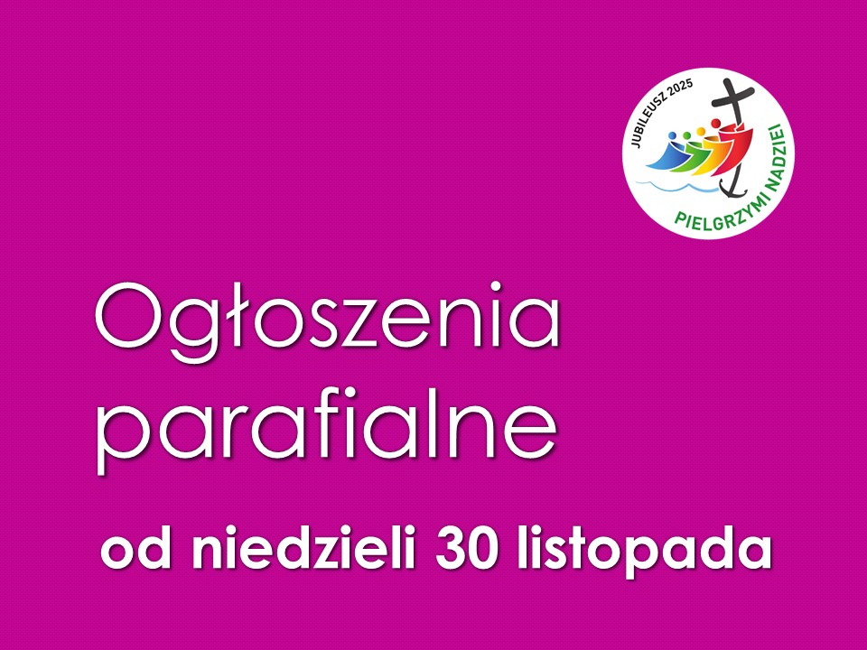 Ogłoszenia na niedzielę 30 listopada 2025:
